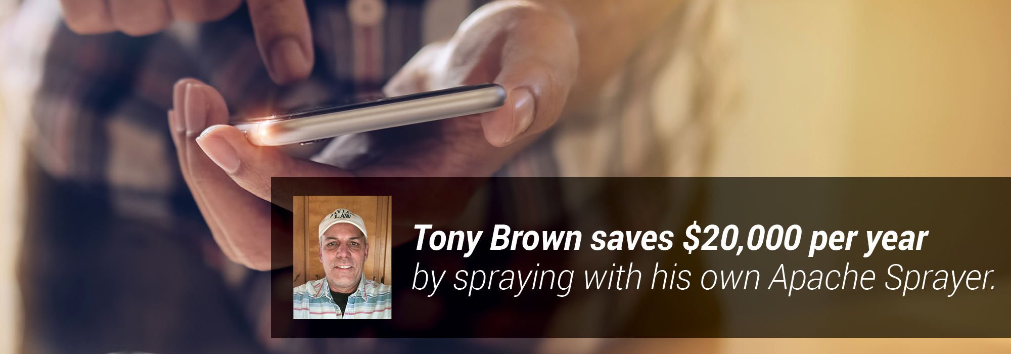 “I still had to hire a lot of spraying done and I was paying $7 per acre for those custom applications, going over 2,500 acres twice a year. That was more than enough to cover what I pay for the Apache Sprayer,” Brown said. “That’s exactly why I bought this Apache, for the return on investment. Money-wise, it just made sense. I can take care of the same spraying with my Apache for $3 per acre.”