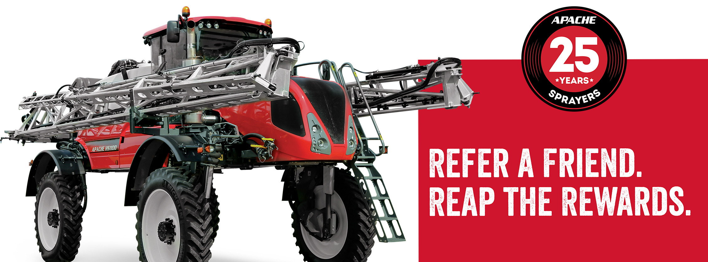 - Tell your friends about the benefits of owning an Apache Sprayer.