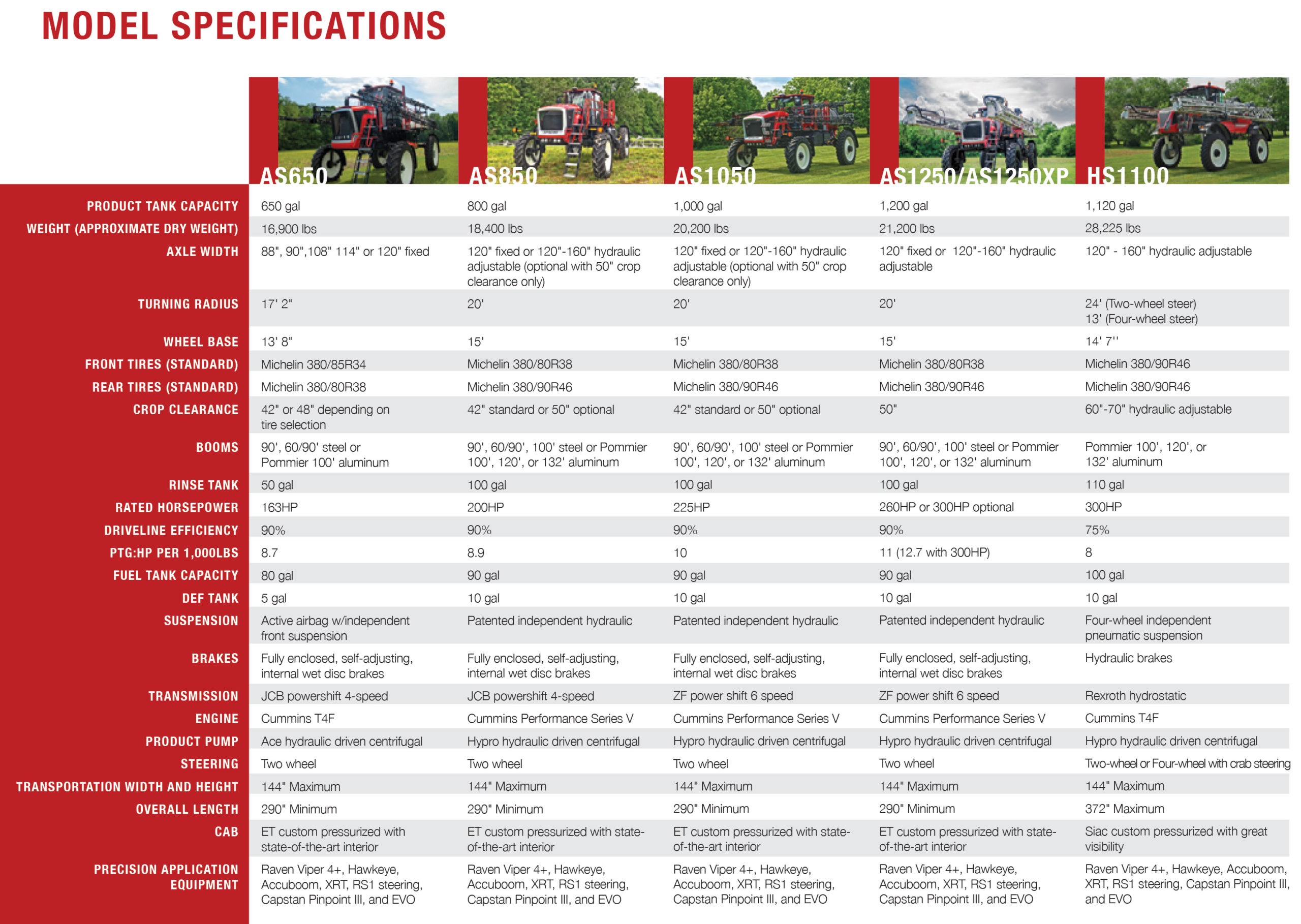 Featuring an 800-gallon tank, the AS850 can work in challenging field conditions that competitive sprayers can’t, and is perfect for the farmer looking for do-it-yourself control.